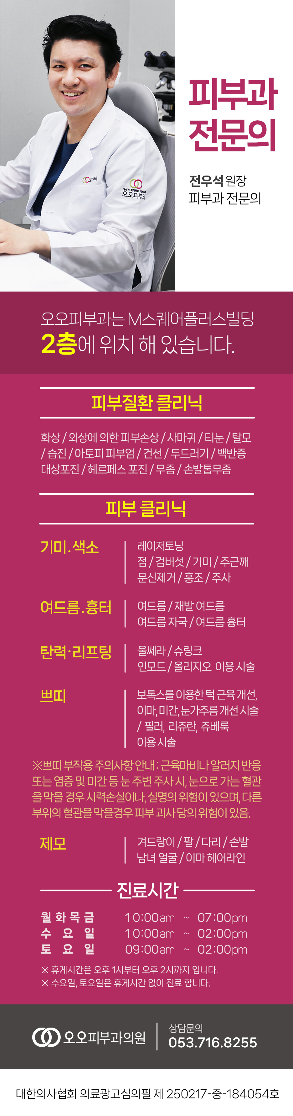 | 작성자 | 오오피부과 | 등록일 | 2025.5.13 | 조회수 | 880 | ||||||||||||||||||